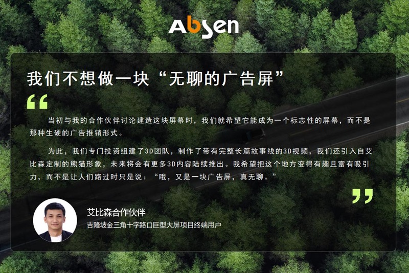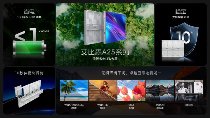 艾比森以“A25系列低碳省电大屏 + 裸眼3D创意内容生态”为核心,提供从硬件到内容的全链路户外显示升级方案。